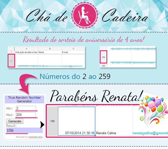 O post agora é pra falar de coisa boa!! Muuuito boa!! hahahaha É o resultado do sorteio de aniversário de 4 anos do Blog (antigo Blog Fala Dani e atual Blog Chá de Cadeira).